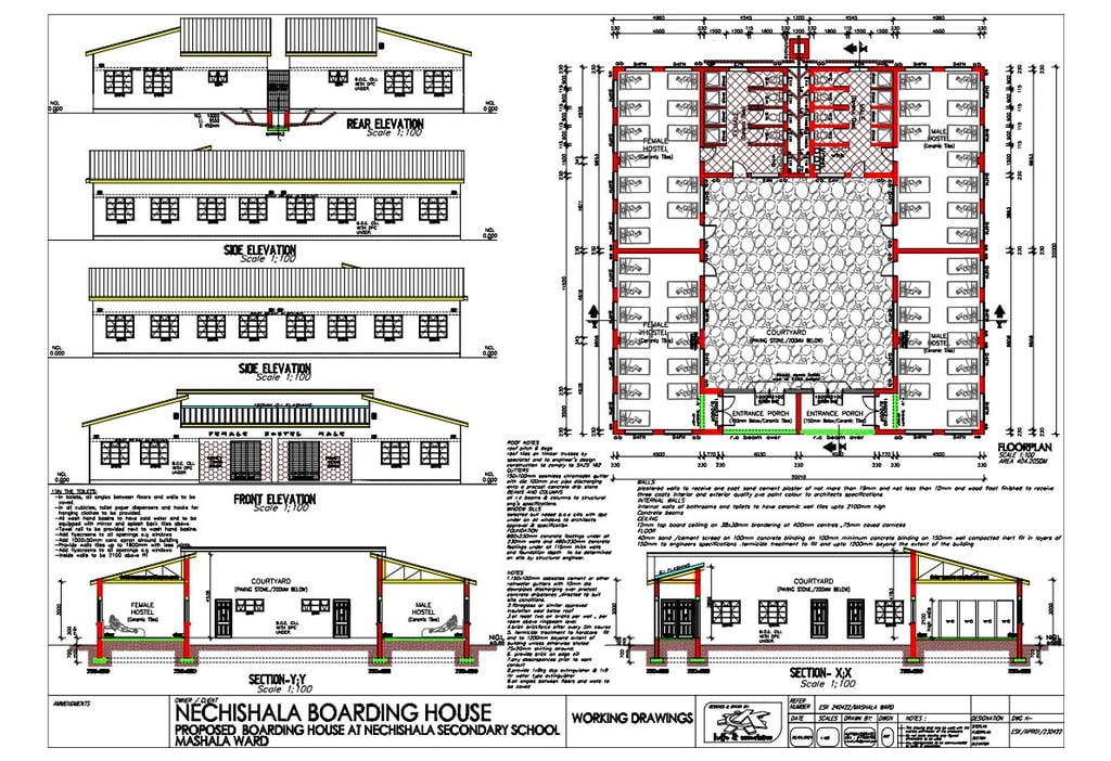 Dopo una consultazione con World Vision Zimbabwe e con il loro subappaltatore Halsteds, siamo riusciti a trasformare il nostro progetto in disegni tecnici esecutivi. Ora crediamo di aver trovato il design più economico, pratico e sicuro possibile, che ci permette di evitare qualsiasi spesa superflua. Siamo convinti che ciò che possiamo ottenere con questa struttura – cento studenti ospitati in sicurezza, con acqua corrente, bagni ed elettricità – sia un risultato straordinario rispetto al costo di costruzione. Con una cifra che in Australia coprirebbe a malapena i lavori di movimento terra, riusciamo a costruire un dormitorio di 100 metri quadrati.